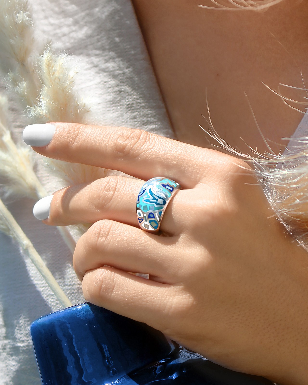 Découvrez la parfaite rencontre entre l'émail et la nacre. Une collection de bijoux uniques où l'association des matières s'inspire de la beauté de l'Italie.