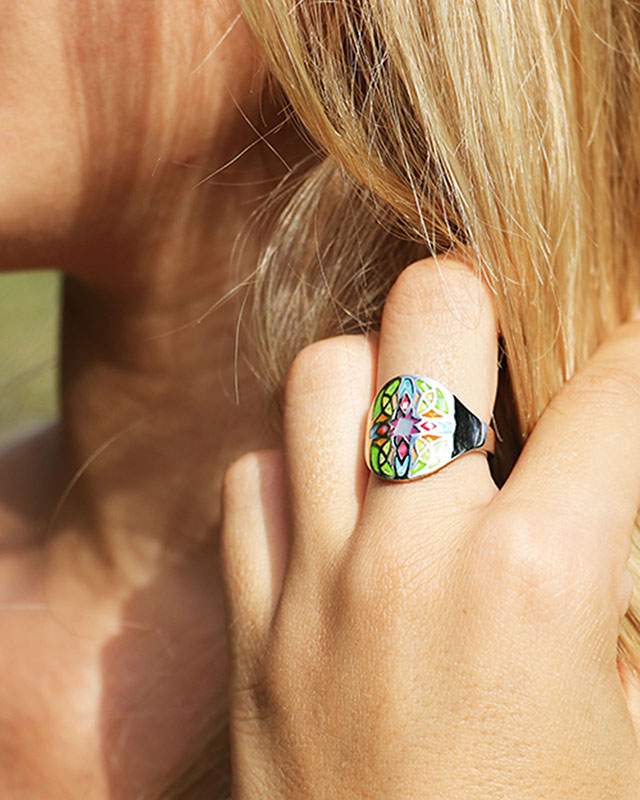 Découvrez la parfaite rencontre entre l'émail et la nacre. Une collection de bijoux uniques où l'association des matières s'inspire de la beauté de l'Italie.