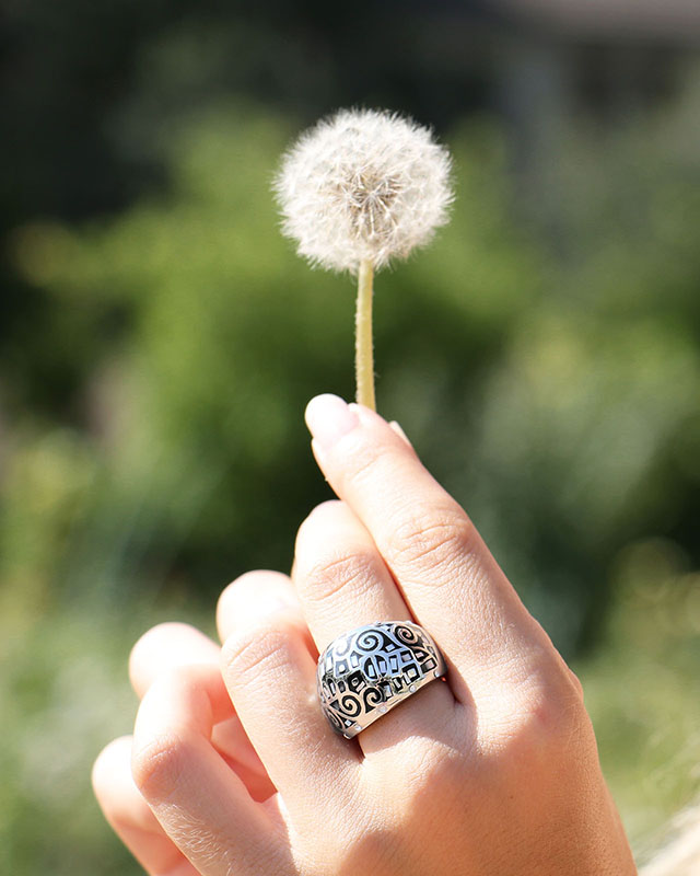 Vous pouvez associer cette bague à notre bracelet Vallermona qui reprend les mêmes motifs et ainsi constituer une parure qui s'accordera parfaitement.