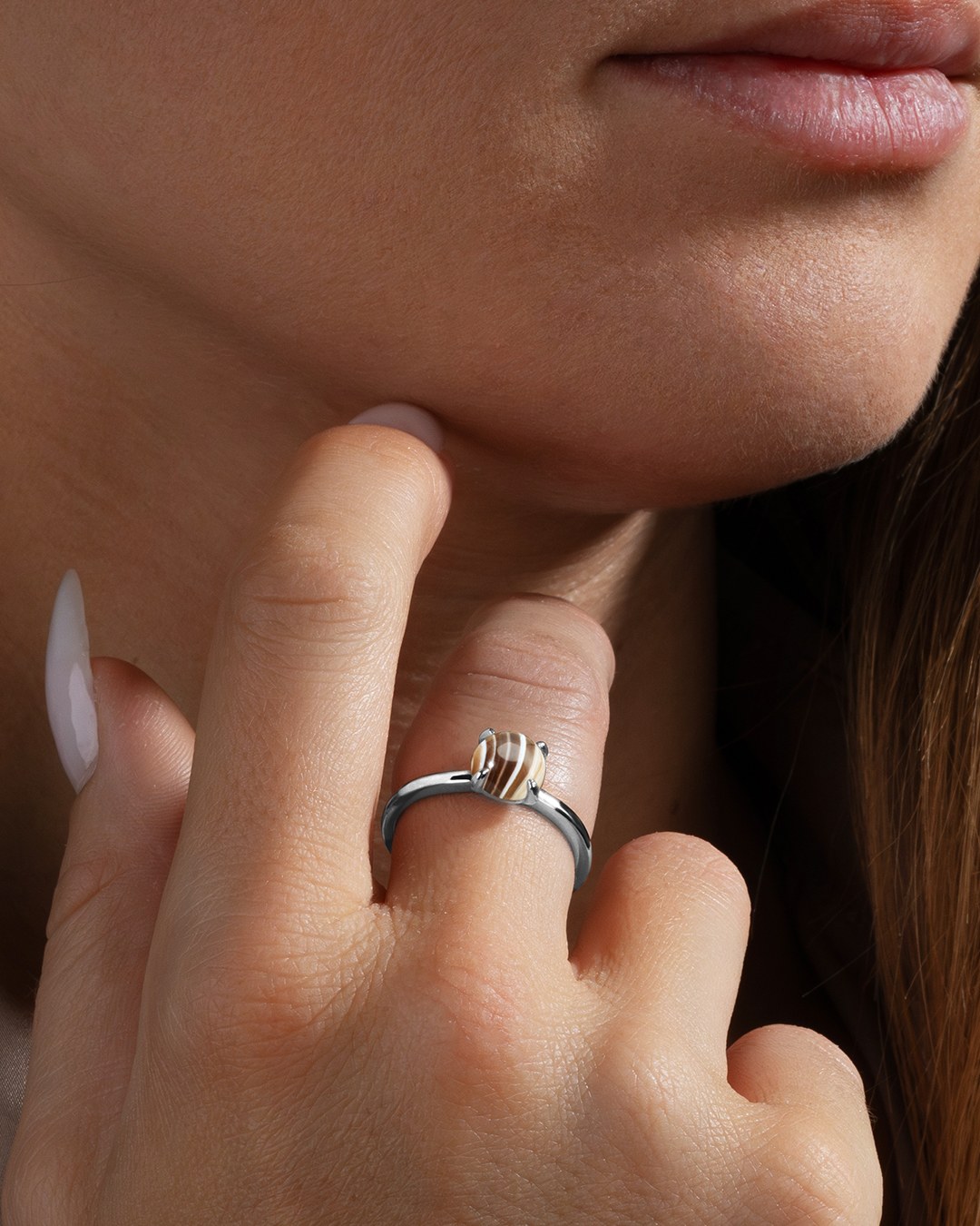 Cette bague se décline en plusieurs tailles pour s'adapter parfaitement à toutes les morphologies. En lithothérapie, l'Agate du Botswana a pour vertu d'apporter de la joie. Cette pierre décuple ainsi le sentiment de bonheur.