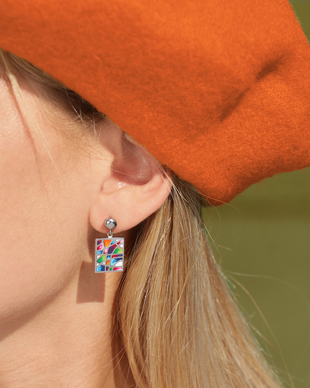 Vous pouvez les associer avec notre bracelet Rivalta qui reprend les mêmes mosaïques multicolores, pour ajouter une touche discrète et originale à votre look.