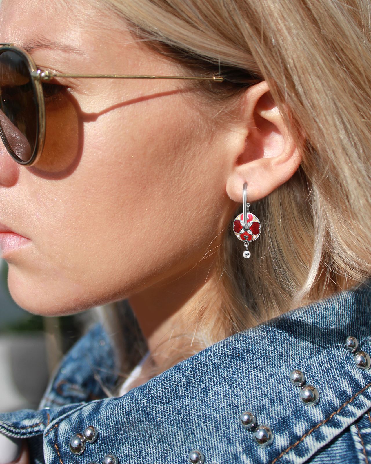 Sa fine chaîne argentée se marie à la perfection au motif de ces boucles.