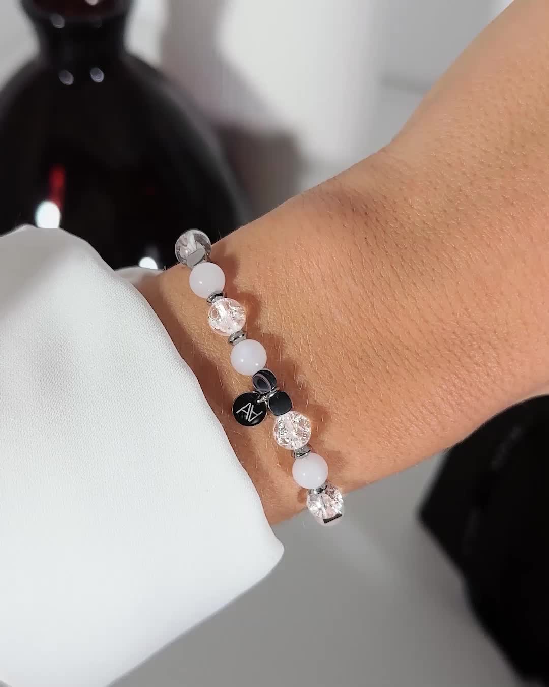 Ensemble, ces deux pierres travaillent en parfaite symbiose. La Pierre de Lune approfondit et guide l'intuition, tandis que le Cristal de roche Crack élève et clarifie cette intuition, la transformant en une pensée cohérente et illuminée. Cette alliance encourage un équilibre entre le cœur et l'esprit, permettant une harmonisation intuitive qui connecte l'individu à des vérités plus élevées, tout en restant fermement ancré dans le présent.