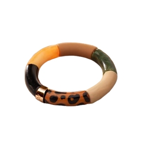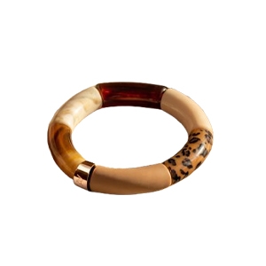 Le bracelet est composé d'éléments raffinés d'une couleur Marron marbré, Marron léopard bicolore, Brun pétrole, Beige marbré, Doré pailleté.