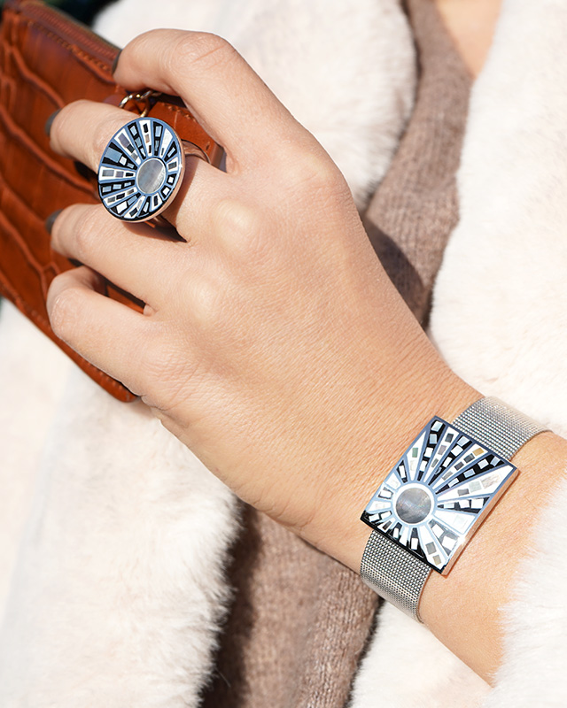 Découvrez la parfaite rencontre entre l'émail et la nacre. Une collection de bijoux uniques où l'association des matières s'inspire de la beauté de l'Italie.