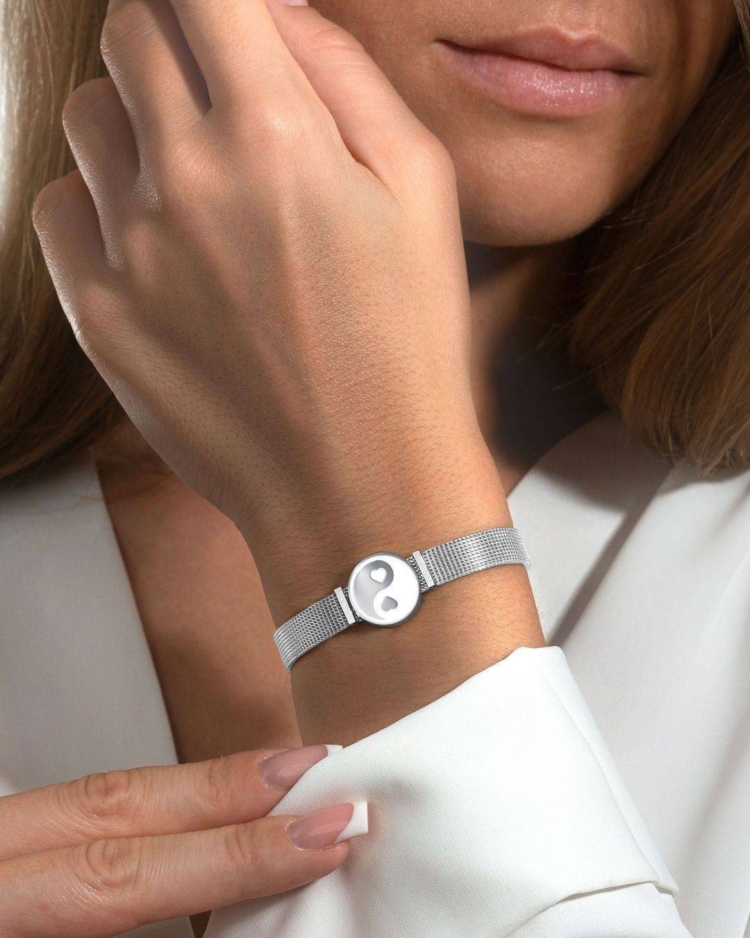 Le motif de la pastille est élégamment décoré d'émail, tandis que le bracelet s'ajuste à tous les poignets, faisant de ce bijou un parfait complément à chacune de vos tenues.