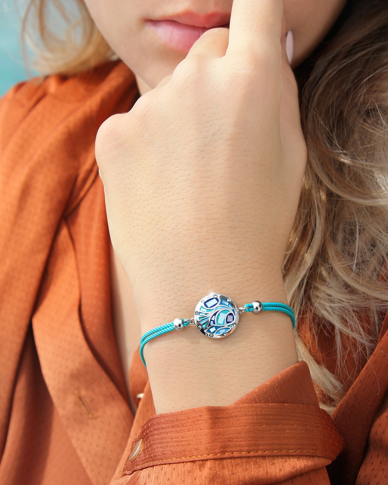 Le bleu-vert de son bracelet coton vous apportera la touche de couleur qui complètera parfaitement vos tenues et qui sublimera votre poignet.
