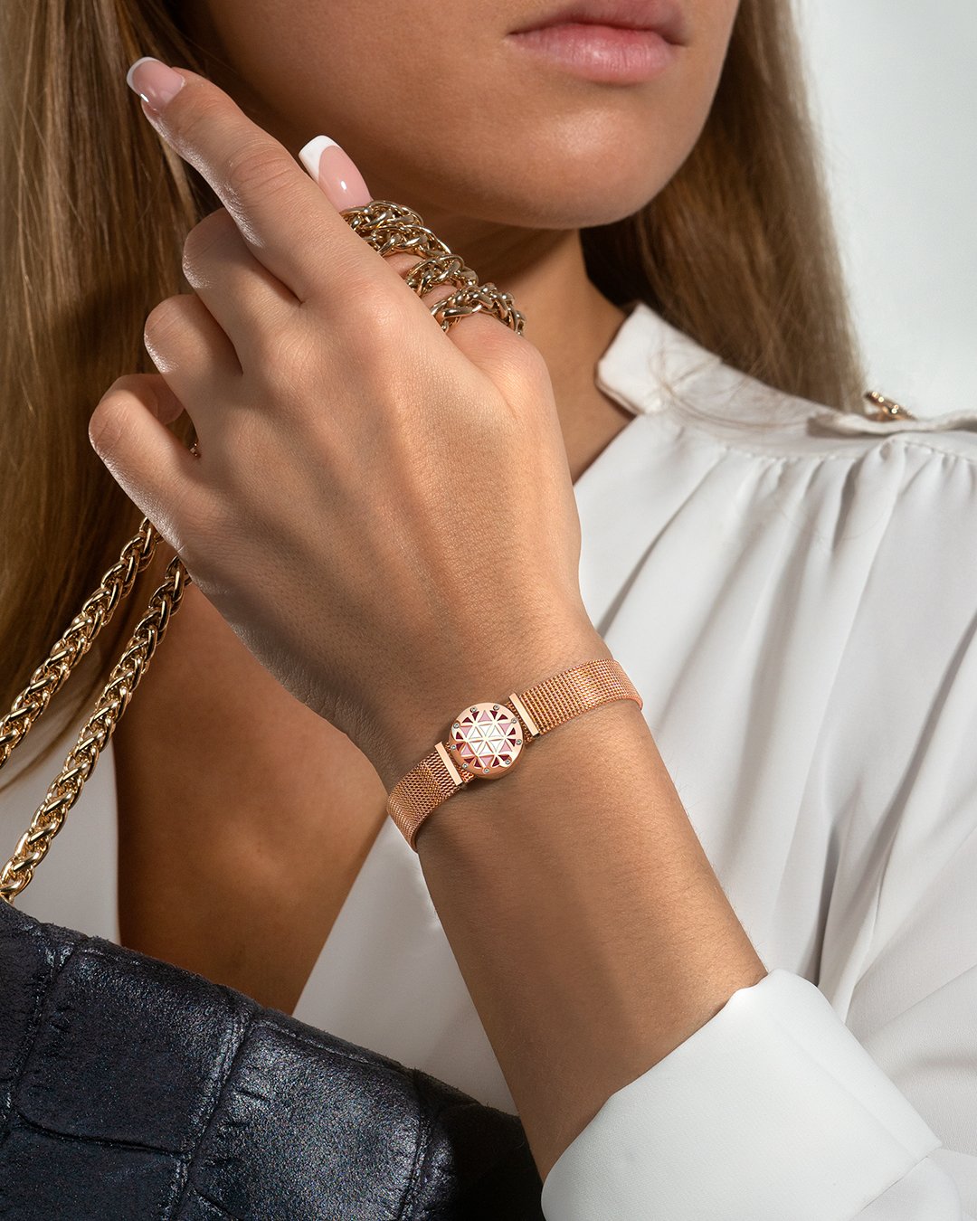 - Matière du bracelet Maille milanaise rosée
