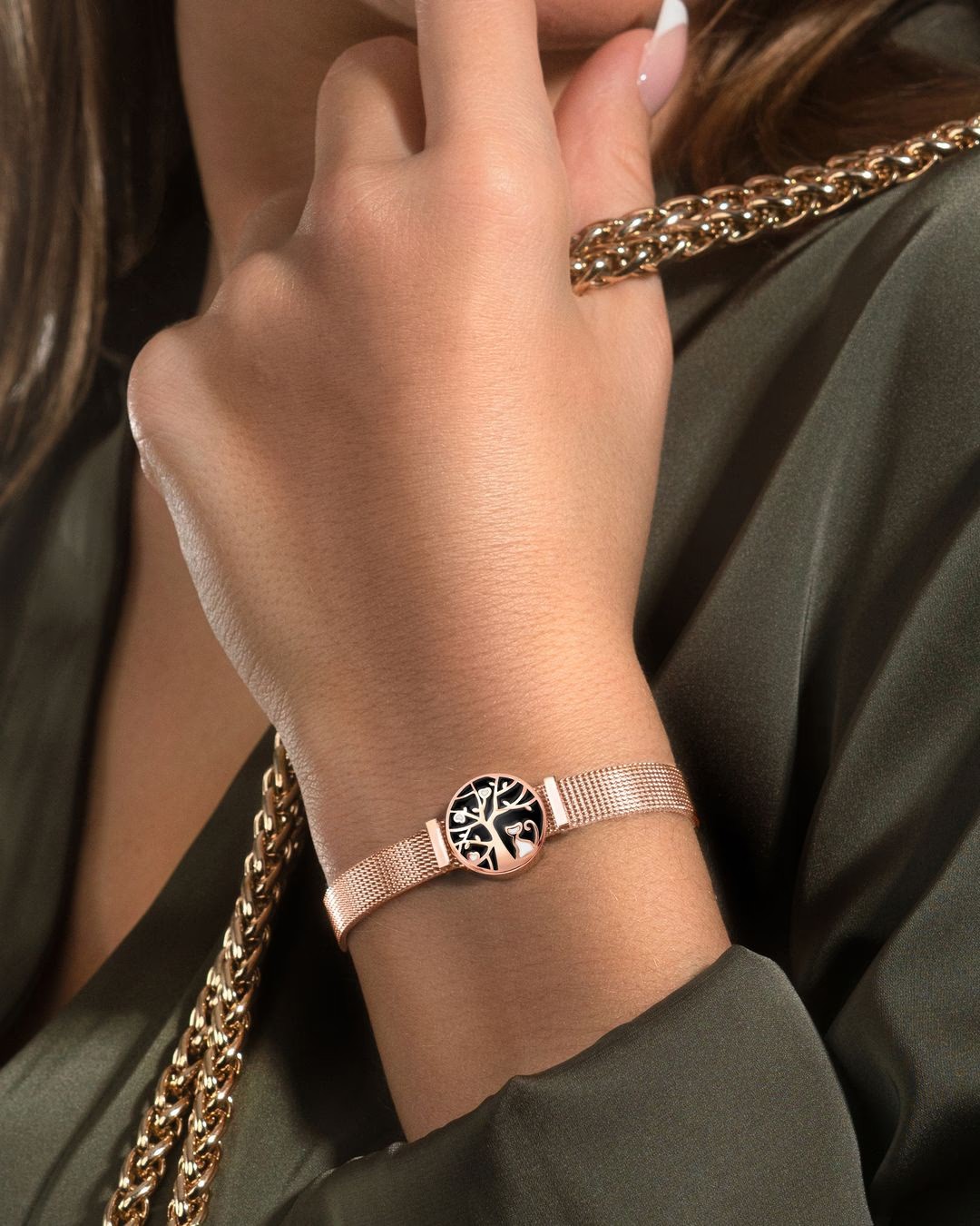 - Matière du bracelet et de la pastille Acier rosé inoxydable