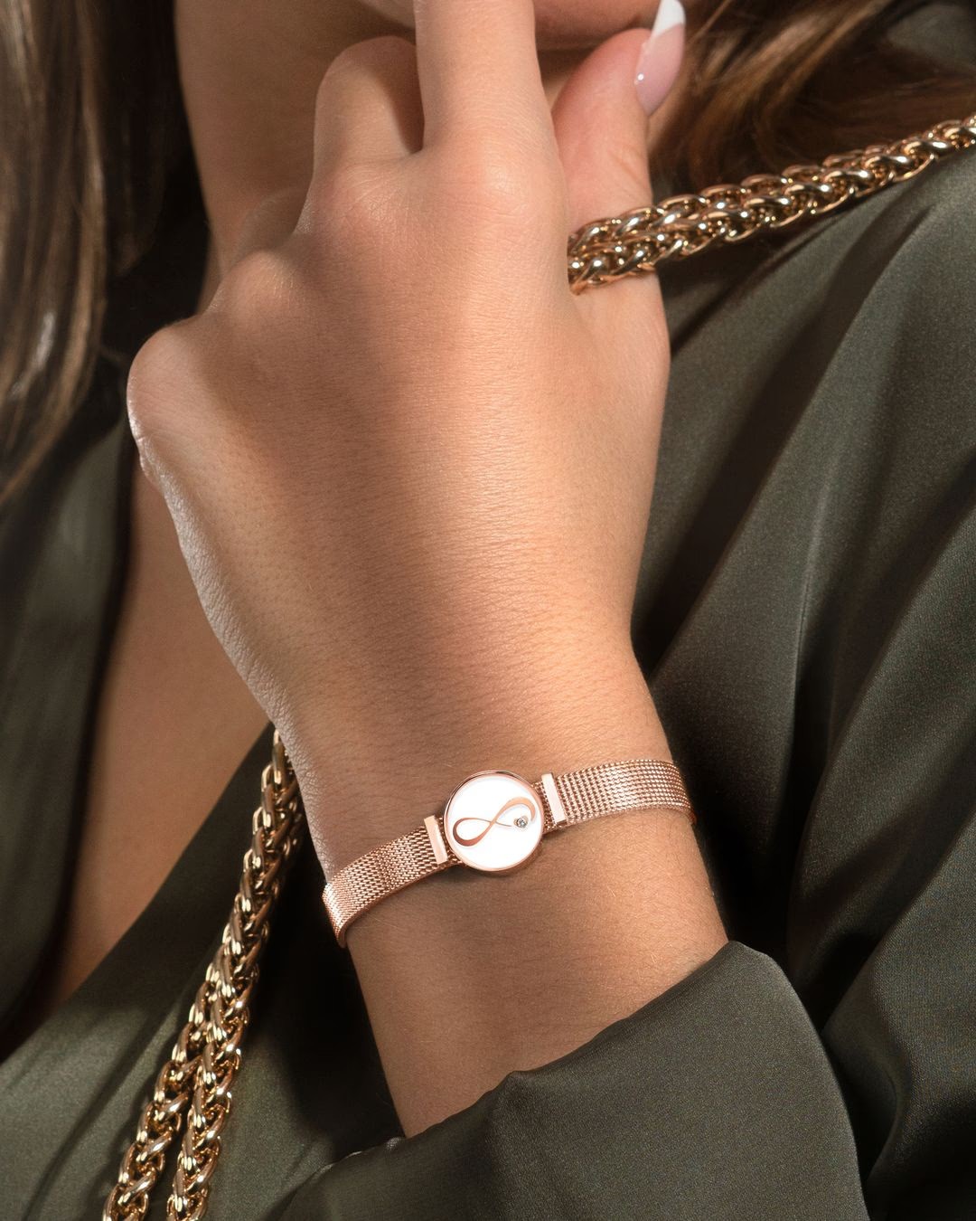 - Matière du bracelet et de la pastille Acier rosé inoxydable