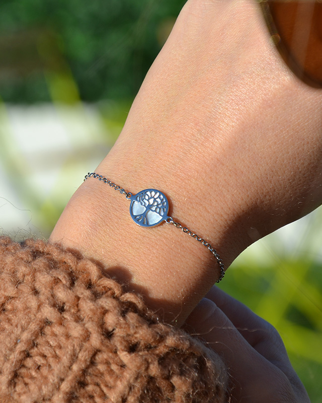 Le design de ce bijou représente l'arbre de vie, symbole de famille et d'harmonie. La nacre change de couleur et s'illumine au soleil.