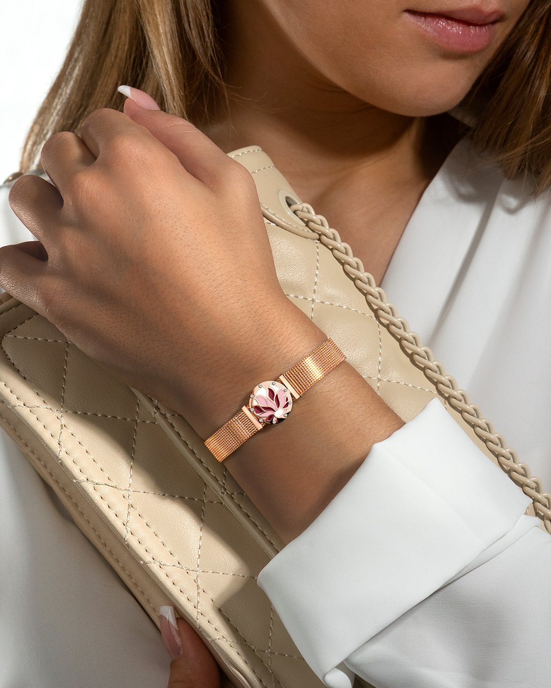 - Matière du bracelet et de la pastille Acier rosé inoxydable