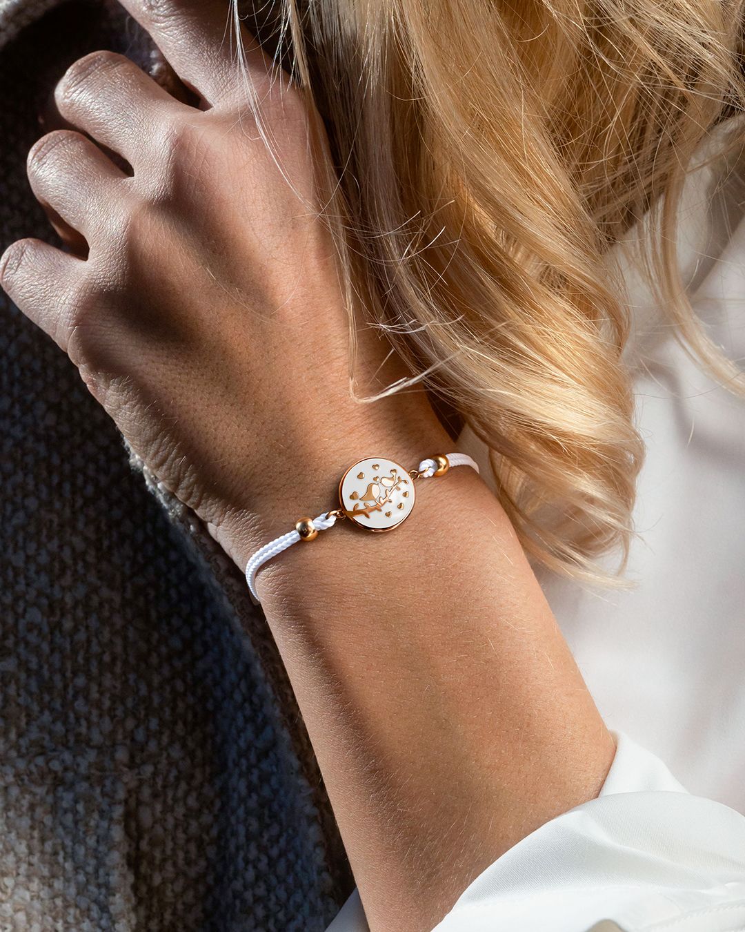 Le blanc de son bracelet coton fait ressortir avec élégance l'émail de ce bijou. Il se mariera à la perfection avec chacune de vos tenues.