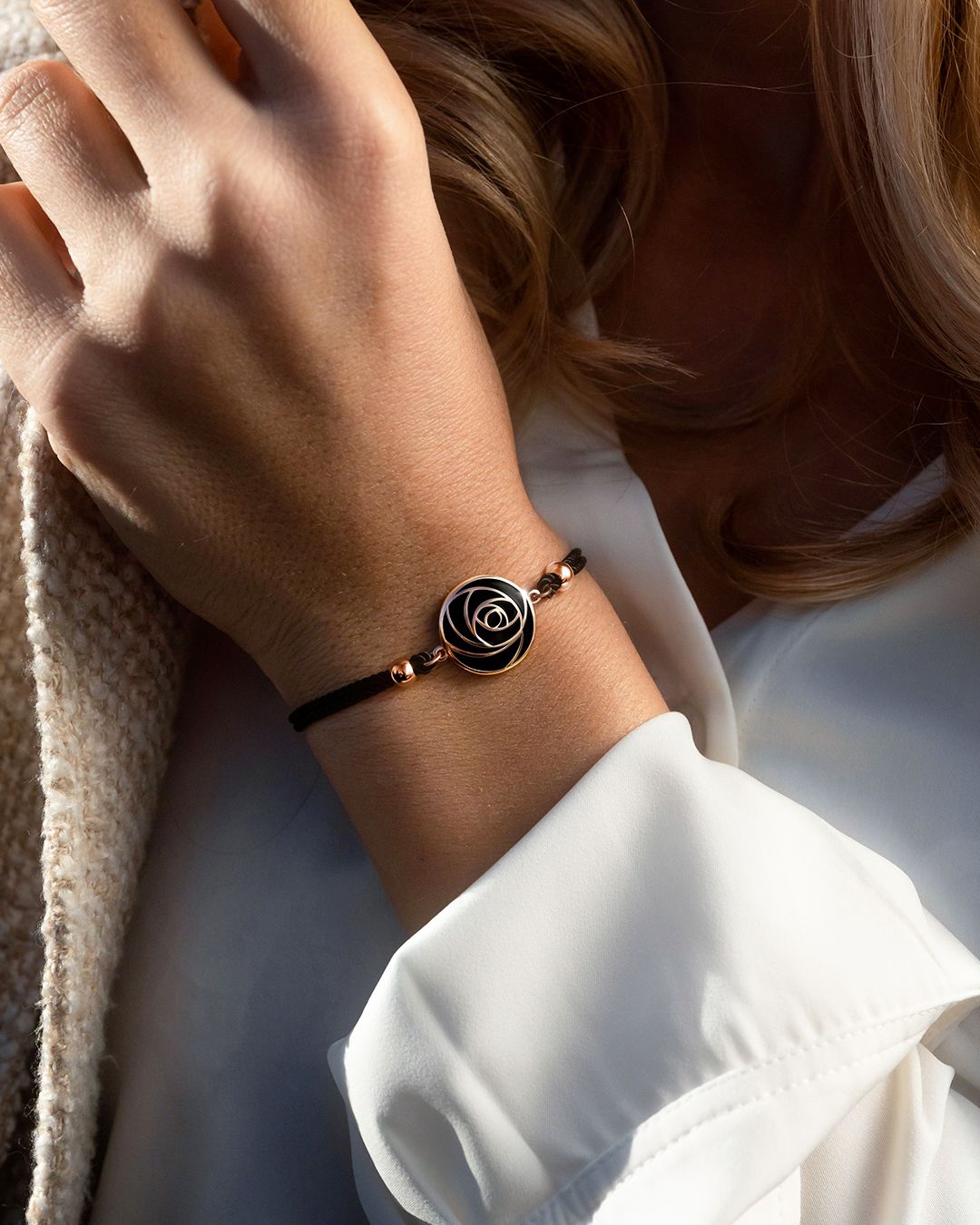 Le noir intense de son bracelet coton fera ressortir avec élégance les détails du médaillon, et viendra sublimer toutes vos tenues.