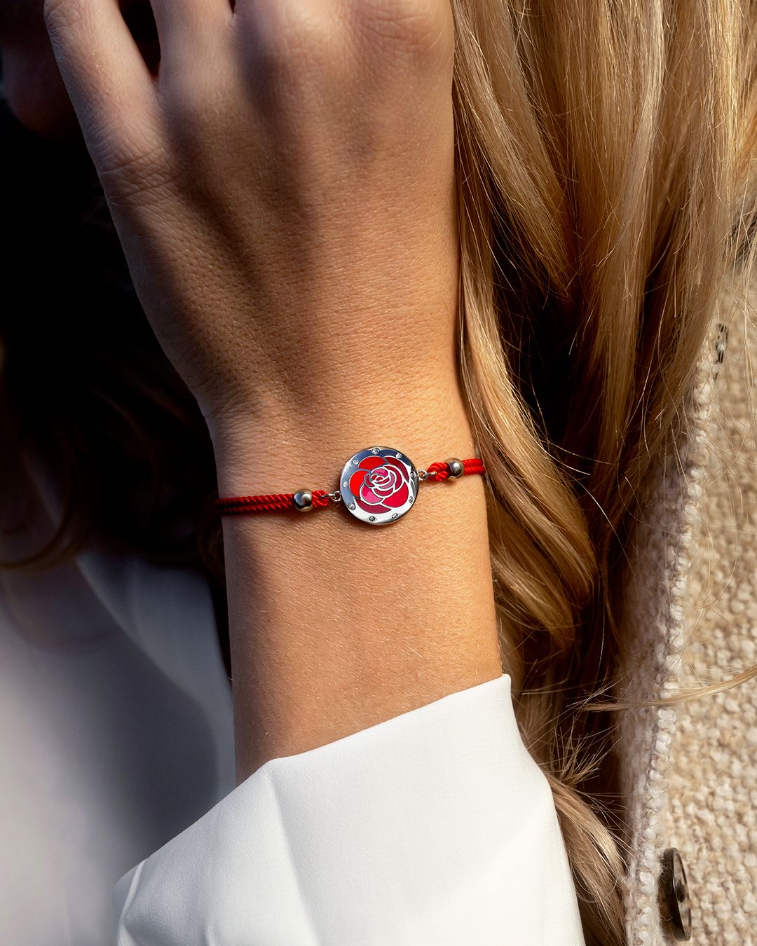 Le rouge de son bracelet coton apportera de la couleur à tous vos looks.