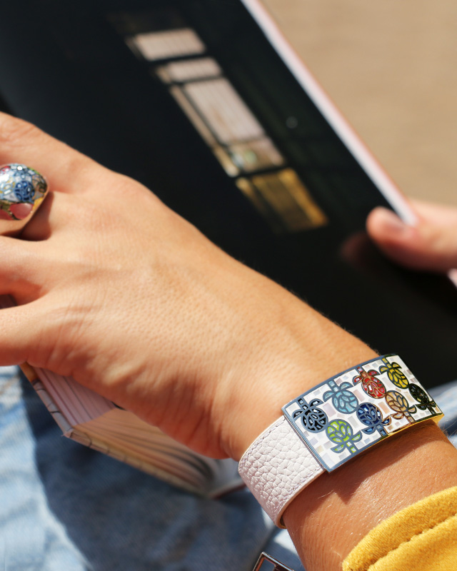 Découvrez la parfaite rencontre entre l'émail et la nacre. Une collection de bijoux uniques où l'association des matières s'inspire de la beauté de l'Italie.