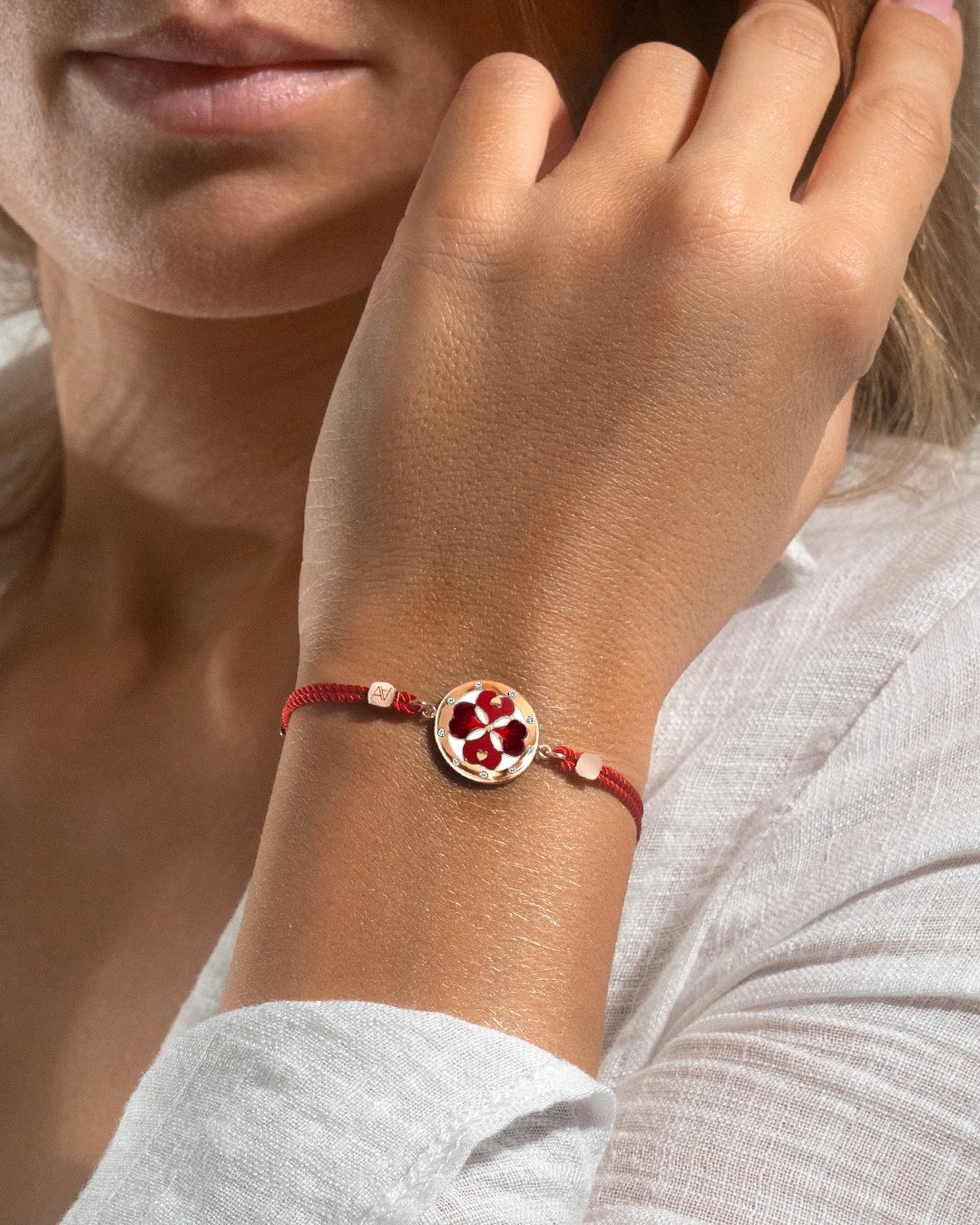 Son bracelet en coton combiné à sa chaîne viendra somptueusement s'allier avec vos looks du quotidien.