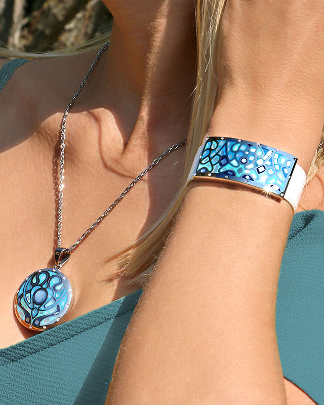 Découvrez la parfaite rencontre entre l'émail et la nacre. Une collection de bijoux uniques où l'association des matières s'inspire de la beauté de l'Italie.