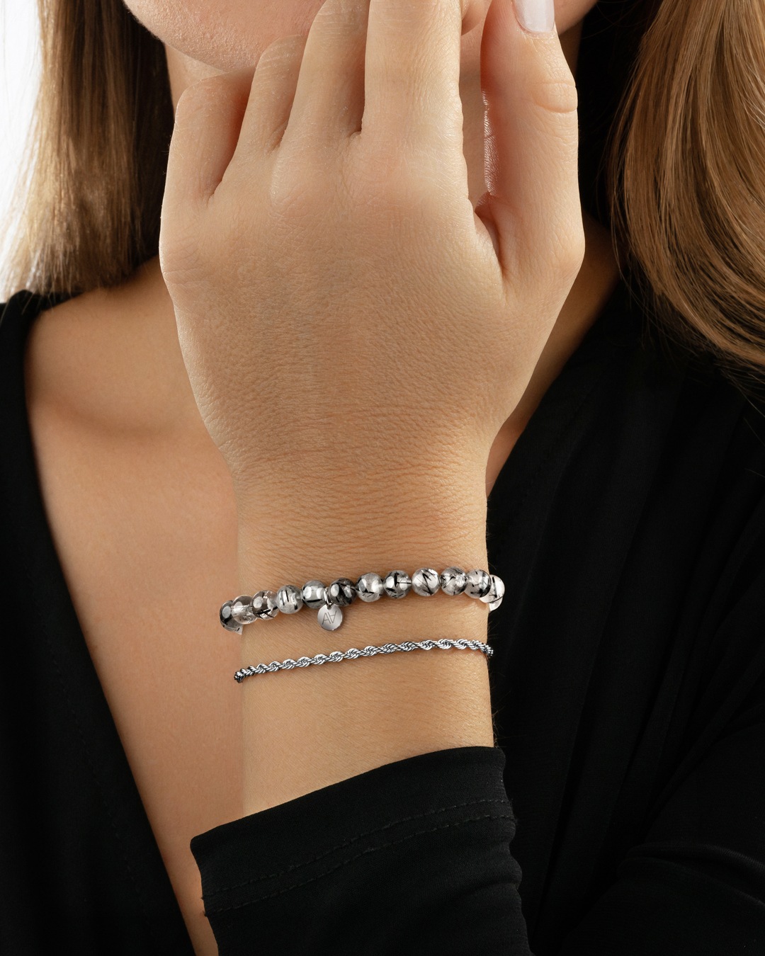 Le bracelet Mia se caractérise par une chaine délicatement torsadée en acier argenté inoxydable.