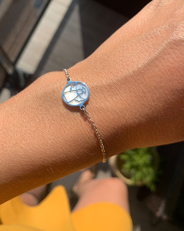Ce bijou représente un ange. Il symbolise la perfection, la bonté ainsi que la protection divine. La nacre de son médaillon reflète à la perfection les rayons du soleil qui illumineront votre poignet.
