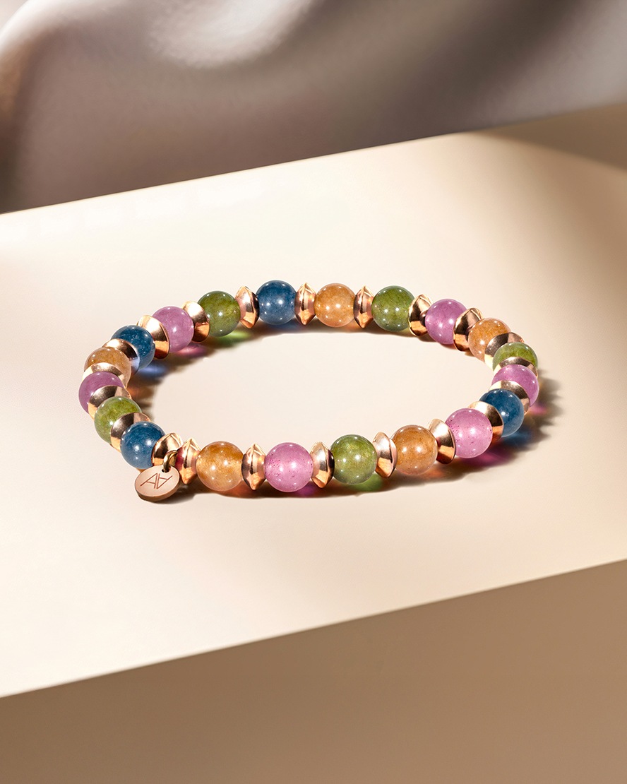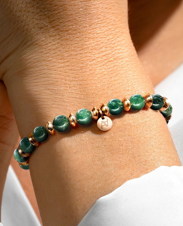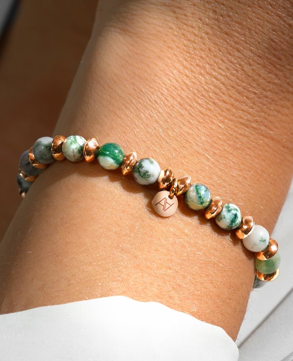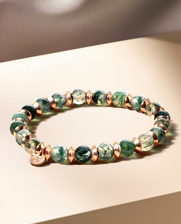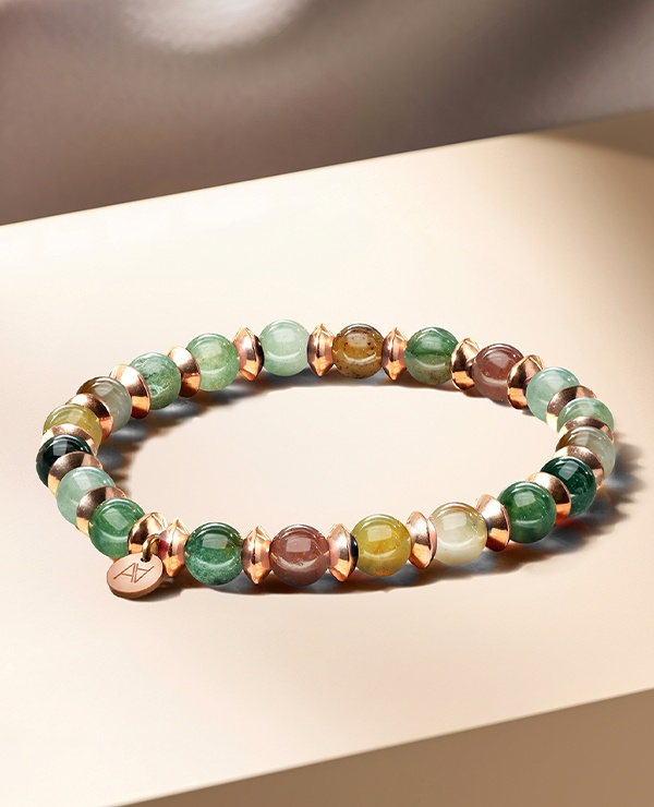 - Matière du bracelet Acier rosé inoxydable et agate bandée