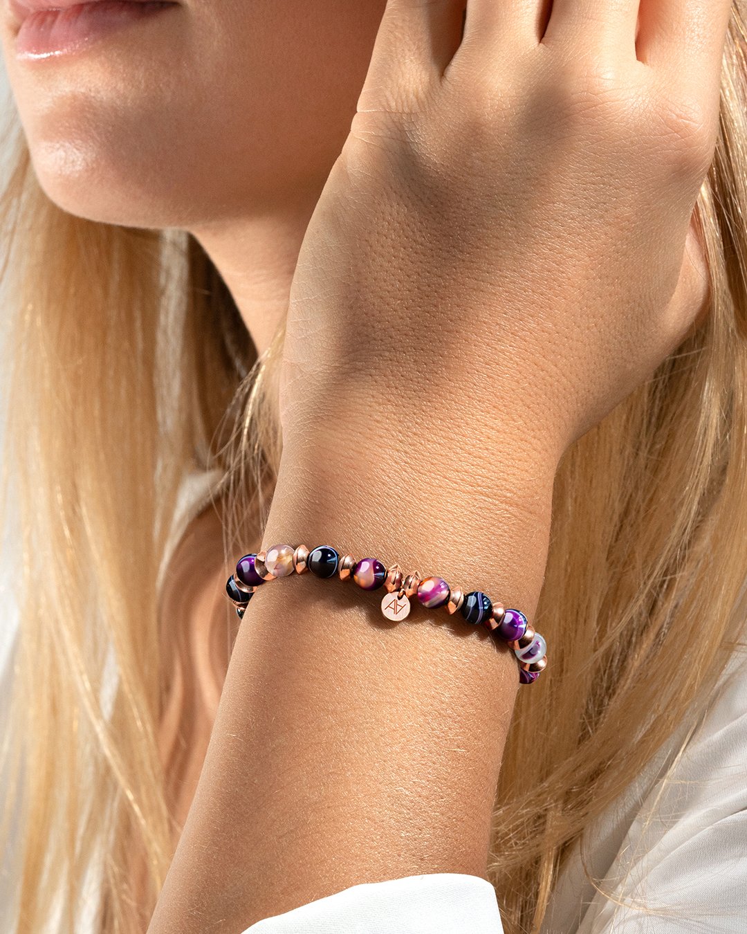 - Matière du bracelet Acier inoxydable et agate à rayures violettes