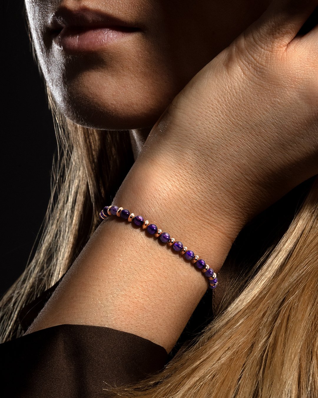 - Matière du bracelet Acier rosé inoxydable et améthyste