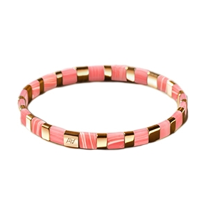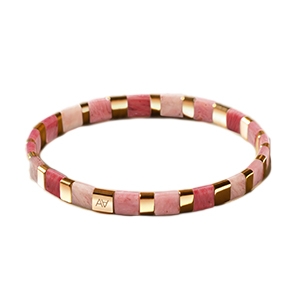 Ce bracelet est façonné à la main à partir de pierres naturelles, minutieusement sélectionnées et travaillées, puis associées au métal rosé doré à l’or fin.