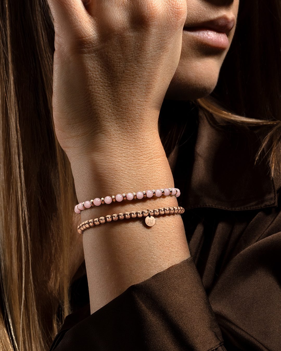 - Matière du bracelet Acier rosé inoxydable et quartz rose