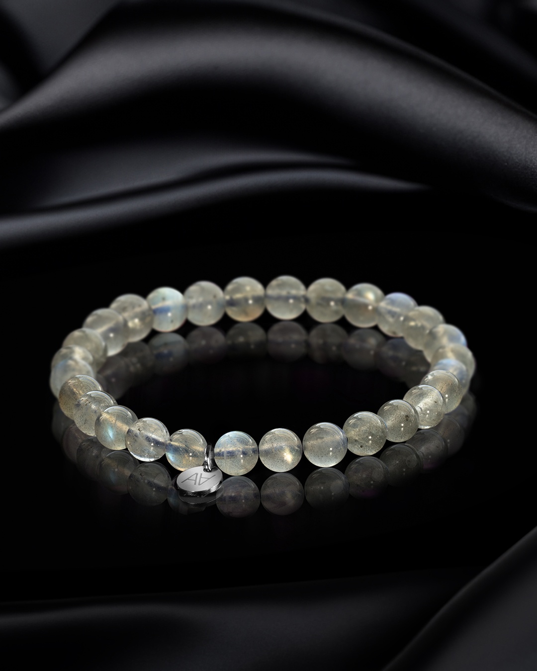 - Matière du bracelet Acier argenté inoxydable et labradorite