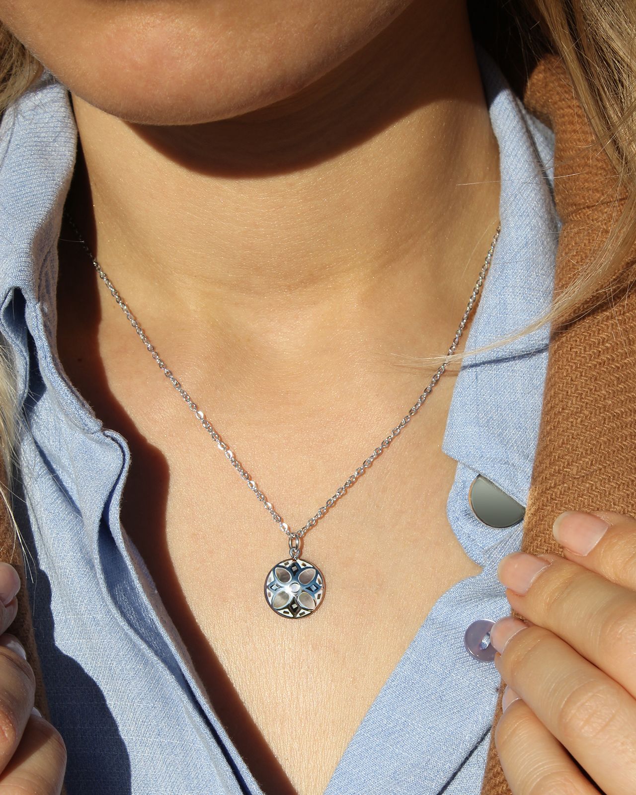 Le design unique et la parfaite symétrie de ses formes, font de ce médaillon une pièce d'exception. Ses pétales nacrés et sa couleur apporte l'équilibre parfait pour un rendu unique.