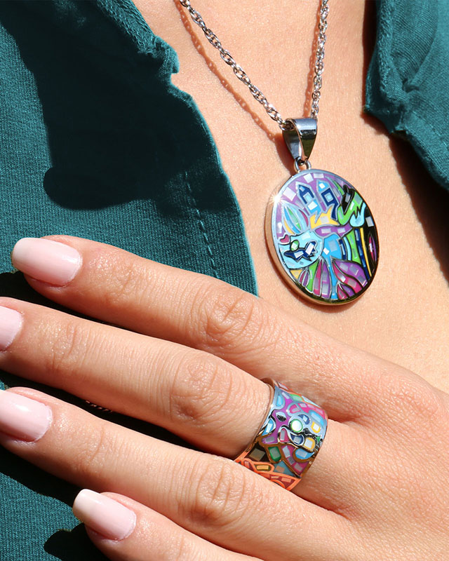 Découvrez la parfaite rencontre entre l'émail et la nacre. Une collection de bijoux uniques où l'association des matières s'inspire de la beauté de l'Italie.