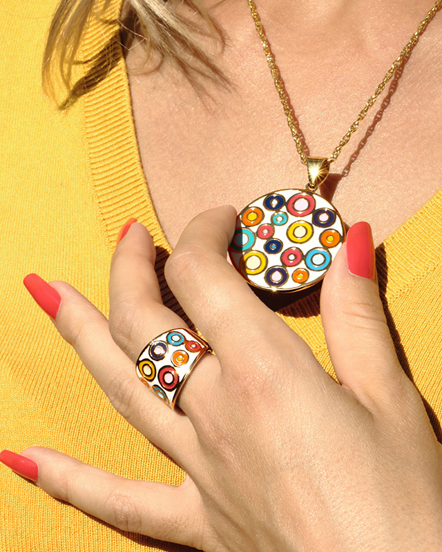 Découvrez la parfaite rencontre entre l'émail et la nacre. Une collection de bijoux uniques où l'association des matières s'inspire de la beauté de l'Italie.