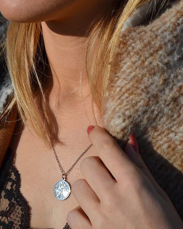 Le design de ce collier symbolise l'arbre de vie, dont la représentation est celle des valeurs familiales et de la force de vivre. La nacre sur le médaillon reflète merveilleusement les rayons du soleil et illuminera votre teint.