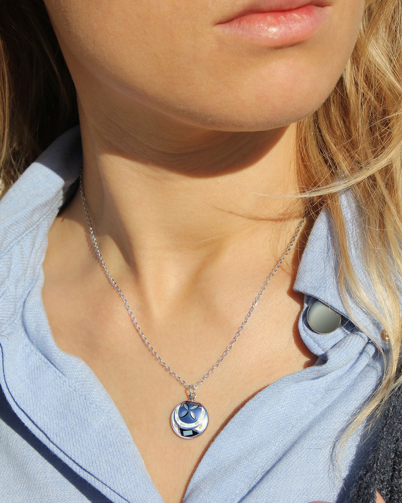 D’une longueur de 40 cm et muni de sa chaînette réglable allant jusqu’à 5 cm, il s’adaptera facilement à votre tour de cou.