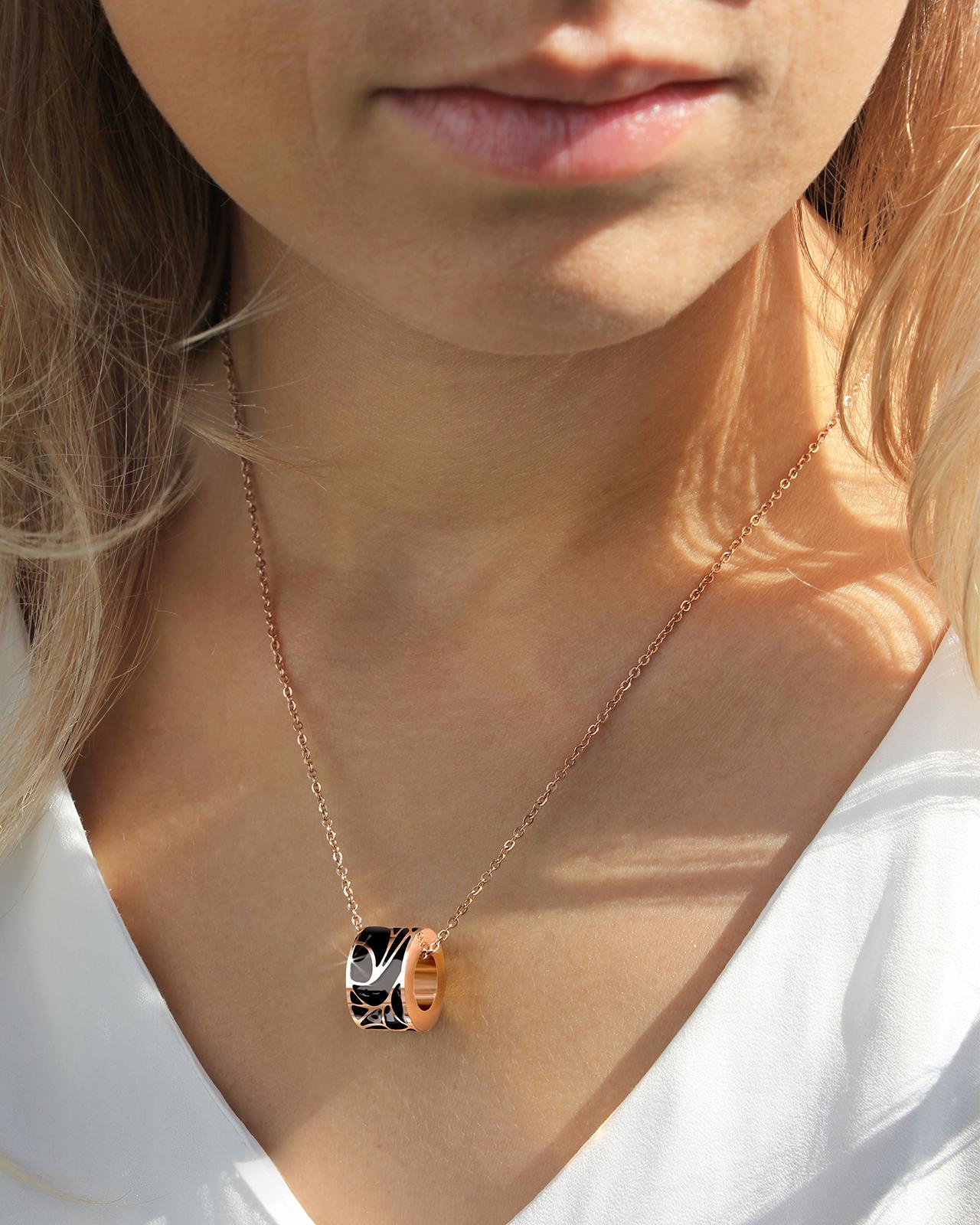 Sa fine chaîne rose gold se marie à la perfection avec le noir intense de son motif.