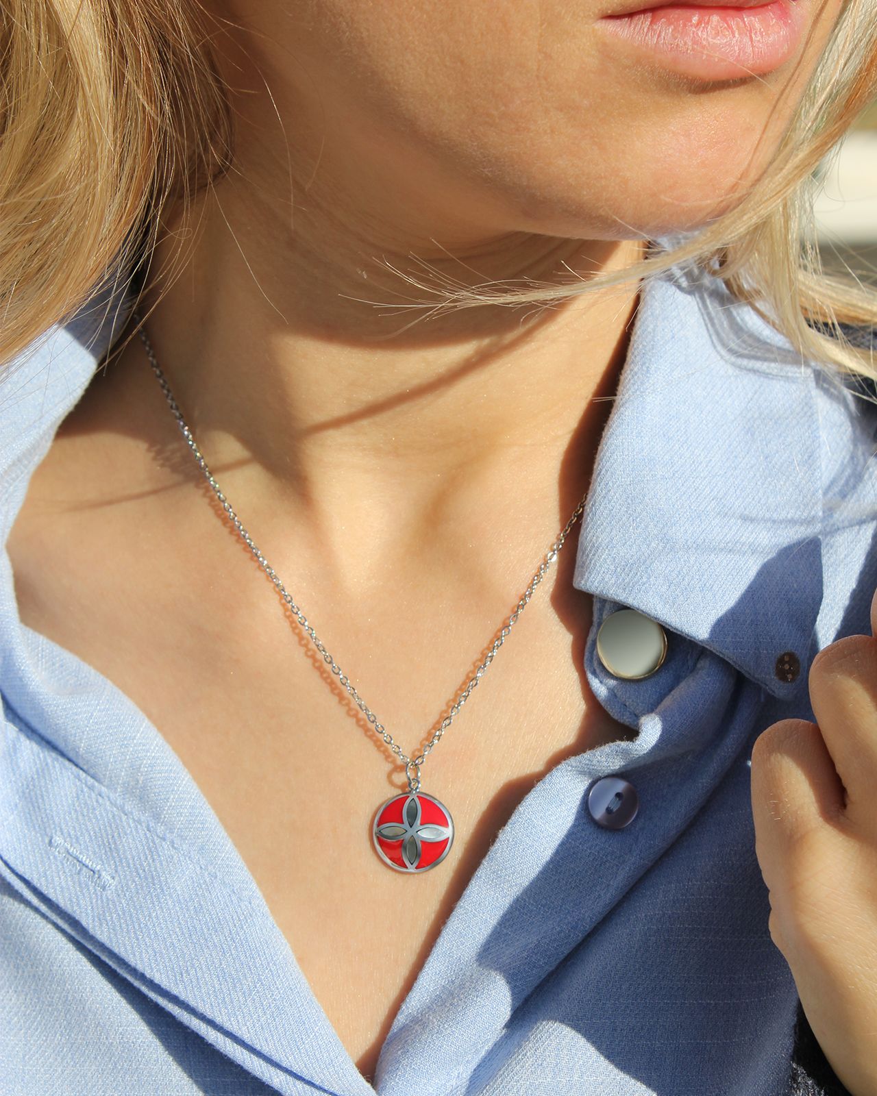 Sa fine chaîne associée à son médaillon vient contraster sa couleur vive et apporte ainsi une combinaison parfaite au bijou.