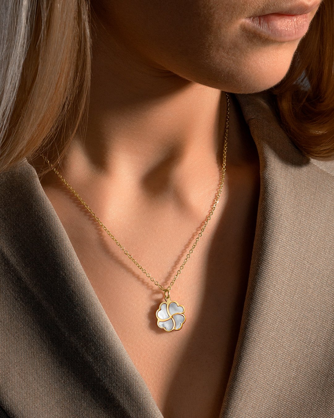 Le médaillon en forme de trèfle à quatre feuilles est le porte-bonheur le plus symbolique qui existe. Chaque feuille a sa propre signification : l'espoir, la foi, l'amour et la chance.